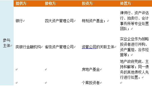 不良资产这么火,处置方法你知道么?来源:问债科技 根据专业机构统计,在一年、三年、五年、十年的投资周期内,全球不良资产基金的内部收益率在各类策略基金中最为稳定,年化收益在11%-16%之间波动,标准差仅为2.8%,是所有类型基金中最低的。 这种高回报源于资产本身的低识别性和价值的高波动性。 ■ 上游:国内不良资产的三个阶段 第一批不良资产: 1999-2000年,四大AMC机构对口接受四家国有商业银行以及国家开发银行不良贷款13939亿元,按照账面金额接受,化解金融风险。 第二批不良资产: 2004-2005年打破一对一剥离,开始市场化交易,中行、建行、交行共剥离5420亿; 2005-2009年采用批发+零售的形式,市场交易活跃,期间农行上市剥离8000亿; 2009-2012年,银行利润高,计提了超额的资产拨备,不良资产出表压力小。 第三批不良资产: 资产相对优质,这一轮不良以民企为主,抵押物较多。 区域上集中在长三角、珠三角和环渤海地区,浙江省不良贷款在长三角位居首位。 资产包收购价格上涨,银行不良资产包全年平均价格在3毛左右,最高的价格在8毛左右,有些新包低至1毛,而老包的价格最多在3分附近。 组包方式变化,一年多包,小步快跑,以上海地区为例,每家银行平均每年打包2-4个资产包,共十多家银行,一年有30-50个资产包剥离。 部分股份制银行例如招商银行、广发银行采用“总对总”的剥离方式,由总行牵头进行总体剥离或者过桥,单包规模在30-50亿之间,一般每个省的资产包价值仍然在3-5个亿。 银行业主要通过清收、重组和核销等途径来处置不良资产,其中,自主核销和打包出售给资产管理公司存在差别,自主核销可以账销案存的方式管理,银行依旧保有未来继续清收的权利,在实际操作中,大部分银行在核销后依旧会继续查找债务人可执行的财产线索,而打包出售后,银行已经不再保有债权债务关系,所以现在银行往外出资产包的是要分区域、分银行去看的。 银行资产包的质量有规律可循,比如,5月和11月的包质量不好,因为处于半年报和年报的前夕,而半年报和年报过后的8、9月和1、2月份则会出来一些好包。并且历史上曾经存在“买肉搭骨头”的现象,比如,银行和投资人私下约定,购买一宗债权的同时,还要搭上另外一些债权作为条件加快核销,而搭上的债权还是上个世纪90年代的,基本是收不回来了,现在这种现象已经没有了。 ■ 中游:处置机构的食物链 不良资产处置参与者被称为“秃鹫”,三级市场划分为大包、小包、小小包,确保每一层的秃鹫们都能吃到肉。 一级市场:四大+地方版持牌AMC。1999年成长城、信达、华融和东方被赋予政策性“秃鹫”职能, 2013年各省设立地方AMC,参与本省不良处置。 二级市场:非持牌的民间投资机构。大包到手后,一级市场不可能每宗债权都自己处理,要拆包,小宗债权打包向下出售。从一级到二级的形式多样,可以是法院公开拍卖、招标、竞价、点对点协议。 三级市场:区域关键人。二级市场投资人推动债权处置,其中可能有1/3和解,剩下再向下拆。不良资产的难点在于处置,处置过程中的难点是区域性,有些债权只能某个人处置,其他机构处理不了。 国内NPL产业链:一个不良资产处置流程中不一定涉及一下所有环节: 从预期回报上看,一级市场买包达到年化10%的预期回报才会出手,二级市场买包要求年化30%以上,三级市场要求在年化50%以上才会出手。下方是四大之一的信达资产收入结构: 收入结构:信达2015年不良资产收入包括应收账款类不良资产、不良资产公允价值变动、可供出售的金融资产投资收益,四项合计收入270亿,占营业收入的45%。 资产结构:附重组条件类不良资产共1646亿元,占比80%,内部收益率12%,主要来源于非金融机构;传统类不良422亿元,占比20%,内部收益率18%,主要来源于银行。 四大国有不良资产处置机构人手不足,且缺乏有效的机制调动市场化的团队。 ■ 下游:民营机构利用AMC做通道 区域性民营投资人特点是: 处置方式比较单一、以诉讼催收为主,在当地有一定优势,同时收购规模偏小,处置团队也具有区域局限性。 除了收购不良资产的包的民间机构外,市场上还活跃着民间个案投资者,特点是资金量比较大,对郊区厂房、市区写字楼等特定项目感兴趣。 下游投资者也会和银行直接沟通收购意向,达成一致意见后找AMC做“过桥”或者“过桥+融资”。 江浙一带的通行做法是:买包后,民间机构和AMC签订合约,债权暂时不做变更,仍以资产管理公司的名义清收,清收完成后和资产管理公司分成。 ■ 处置手段 不良资产的处置环节最为重要,而资产处置的方式相比前两轮市场有了更多的手段: 诉讼追偿:最常用。 资产重组:包括以资抵债,债务更新,资产置换等方式。 债转股:将债权转为股权,进行阶段性持股,并对企业进行经营管理。多样化出售,包括公开拍卖、协议转让、招标转让、竞价转让、分包等。 资产置换:两个市场主体之间为了各自的经验需要,通过合法的评估程序对资产进行评估的基础上,签订置换协议。 租赁:对非现金资产,如房产、机械设备,可以通过租赁方式收回现金。 证券化:通过SPV把不良债权打包买断后设计成证券化产品发售。 破产重组或清算:通过破产程度将固定资产、流动资金、债权、银行存款等予以整体处置。 ■ 处置机构的核心竞争力 不良资产处置可能是目前仅存的暴利市场,但是行业复杂程度较高,